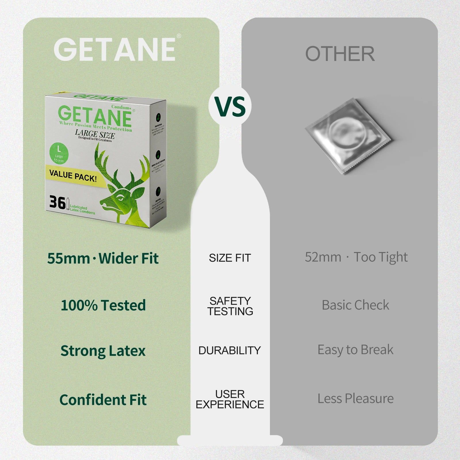 GETANE® Large 55mm Wide Fit Condoms – 36 Pack